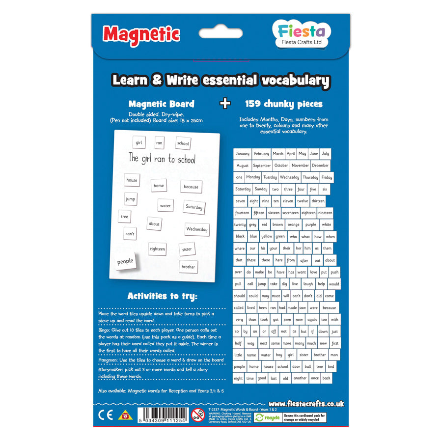 Magnetic First Words Yrs 1 & 2 are great for teaching years children in grades 1 and 2 spelling and reading words. Comes with a magnetic board and 160 high frequency words for this age group, all with magnetic backing. Great for developing vocabulary and writing skills.
