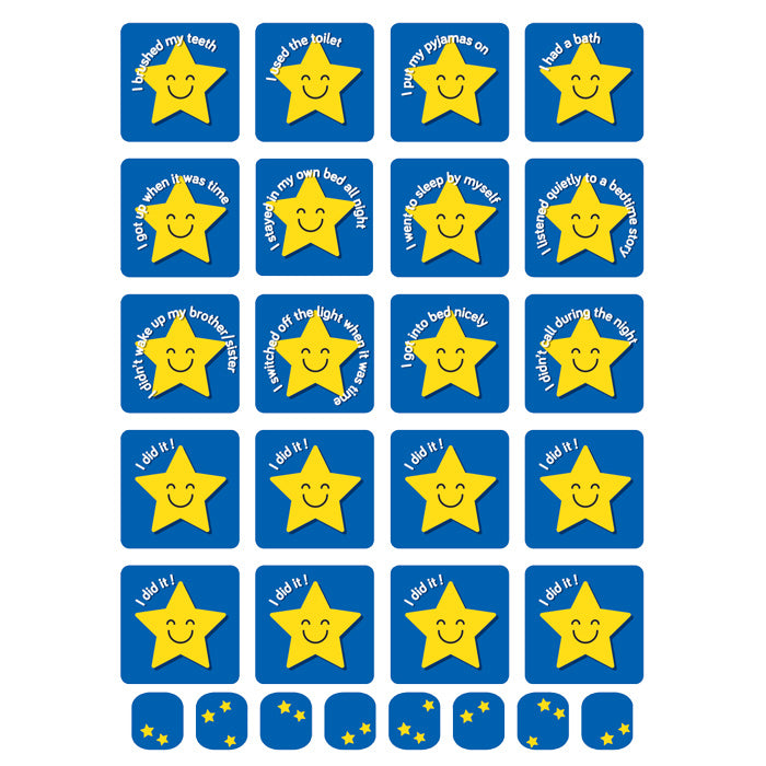 Good Night Chart makes bedtime hassle a thing of the past! Using the 20 easy-to-follow activity pieces, such as brush my teeth and go to bed nicely, parents can create a daily bedtime routine that children will love to follow. When they achieve the activity, they simply turn the piece over to reveal a happy star.