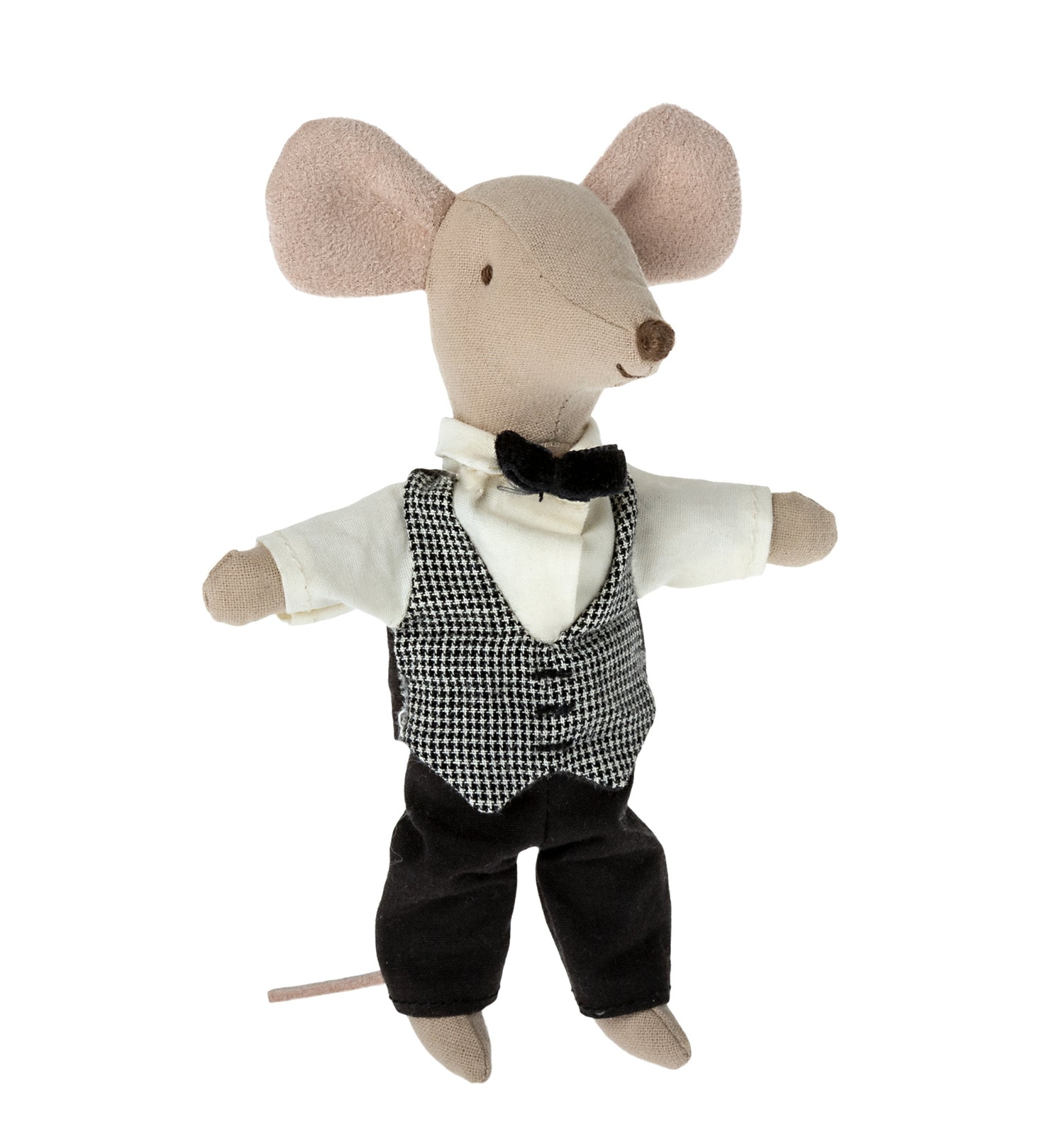 The waiter mouse is the perfect helper for any party or the royal family. The mouse is dressed classically and has magnets in the hands, so it is easier to hold all metal utensils (sold separately). Measures 15cm in height.