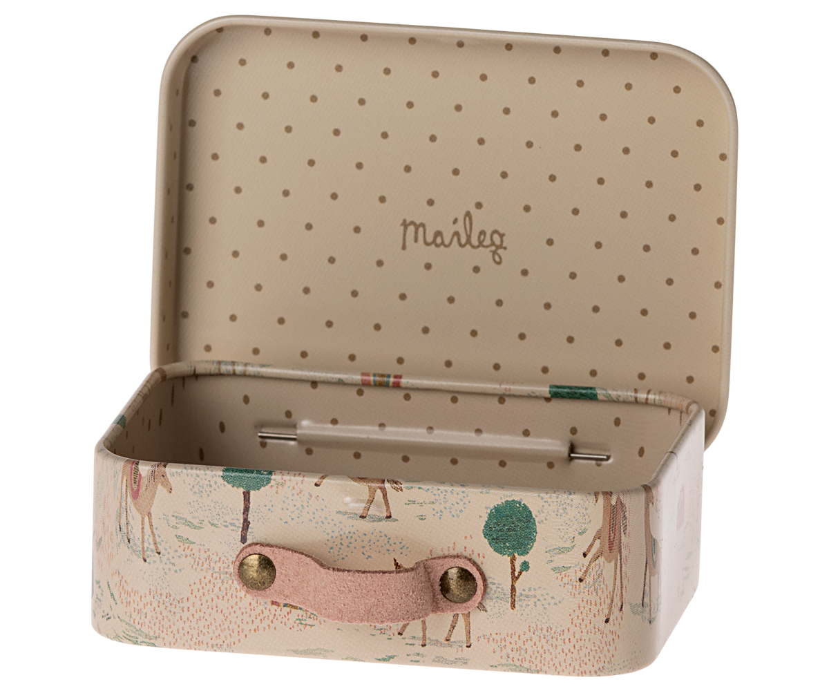 This small metal suitcase with colorful illustrations and beautiful details can be used for any occasion: small gifts, storage of small items or for mice and small bunnies to bring their belongings on the go.