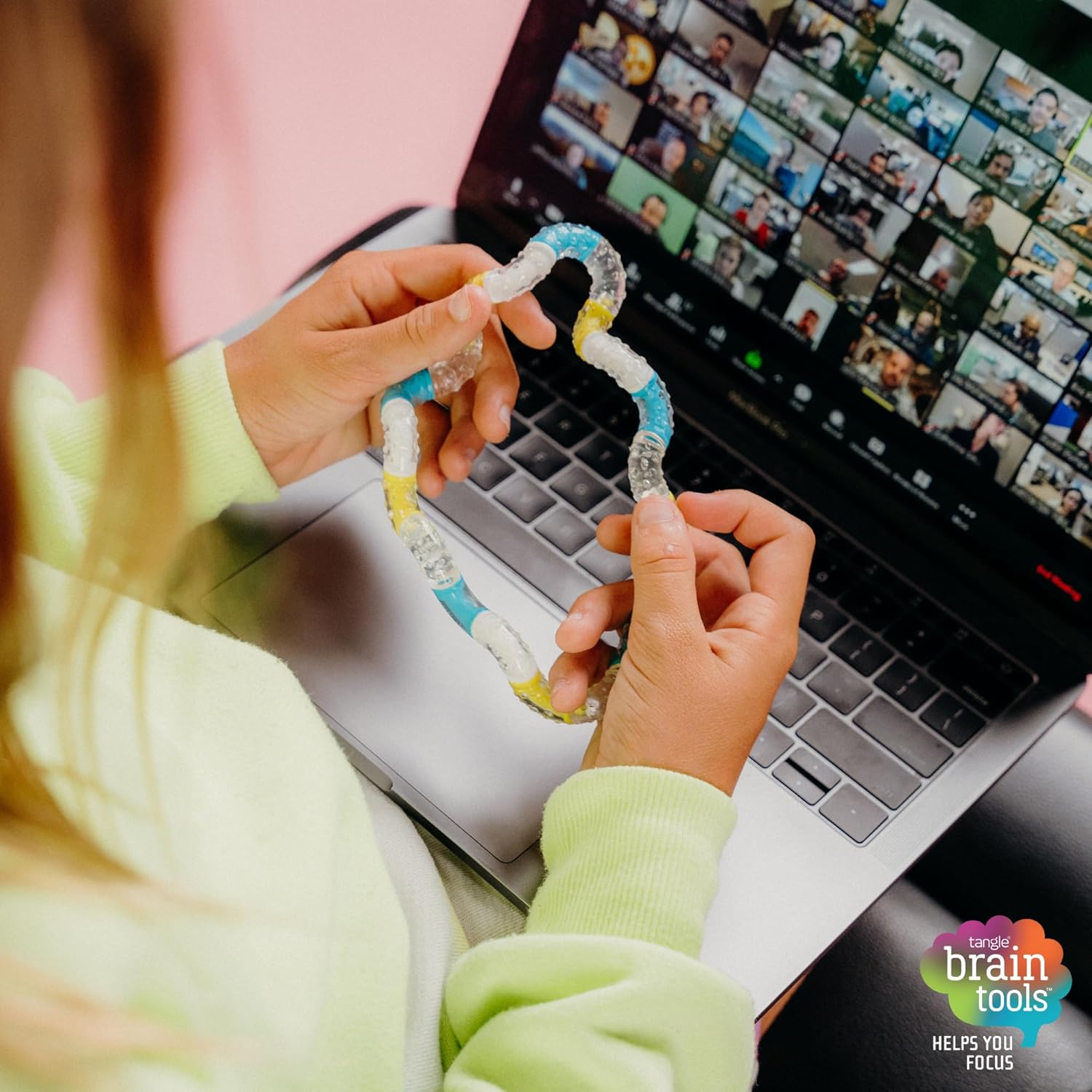 - Fidget to Focus: Use the Tangle Toy when you are in a zoom meeting, classroom, or anywhere you would need to focus. Playing with the Tangle will improve your focus and activate both sides of the brain while you are learning.